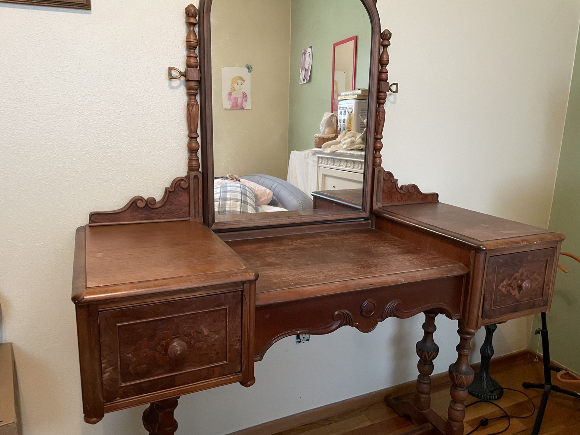 Antique Vanity Desk And Mirror