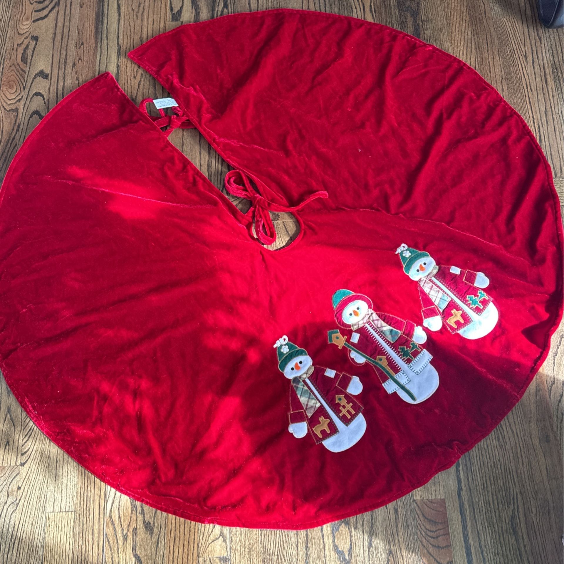 Christmas Tree Skirt Velour 48” Red With 3 Snowmen