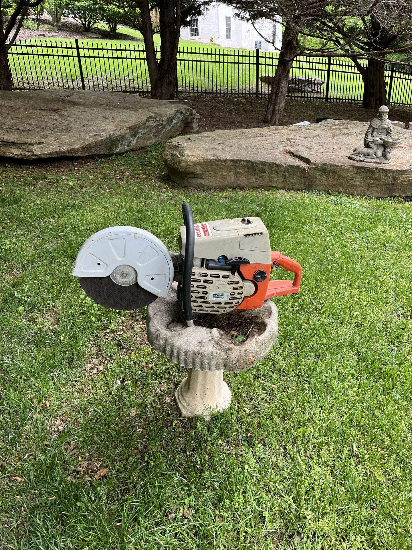 Dolmar is made in Germany and one of the best quality saw brands. This beauty fires right up easy, idles perfectly, and roars when you pull the throttle. 12" blade capacity, and runs on 50:1 gas/2-cycle oil mix. Ready to go to work for you. Includes brand new 12” Blade ($85 at HD). Contact me to set up a time to check it out.