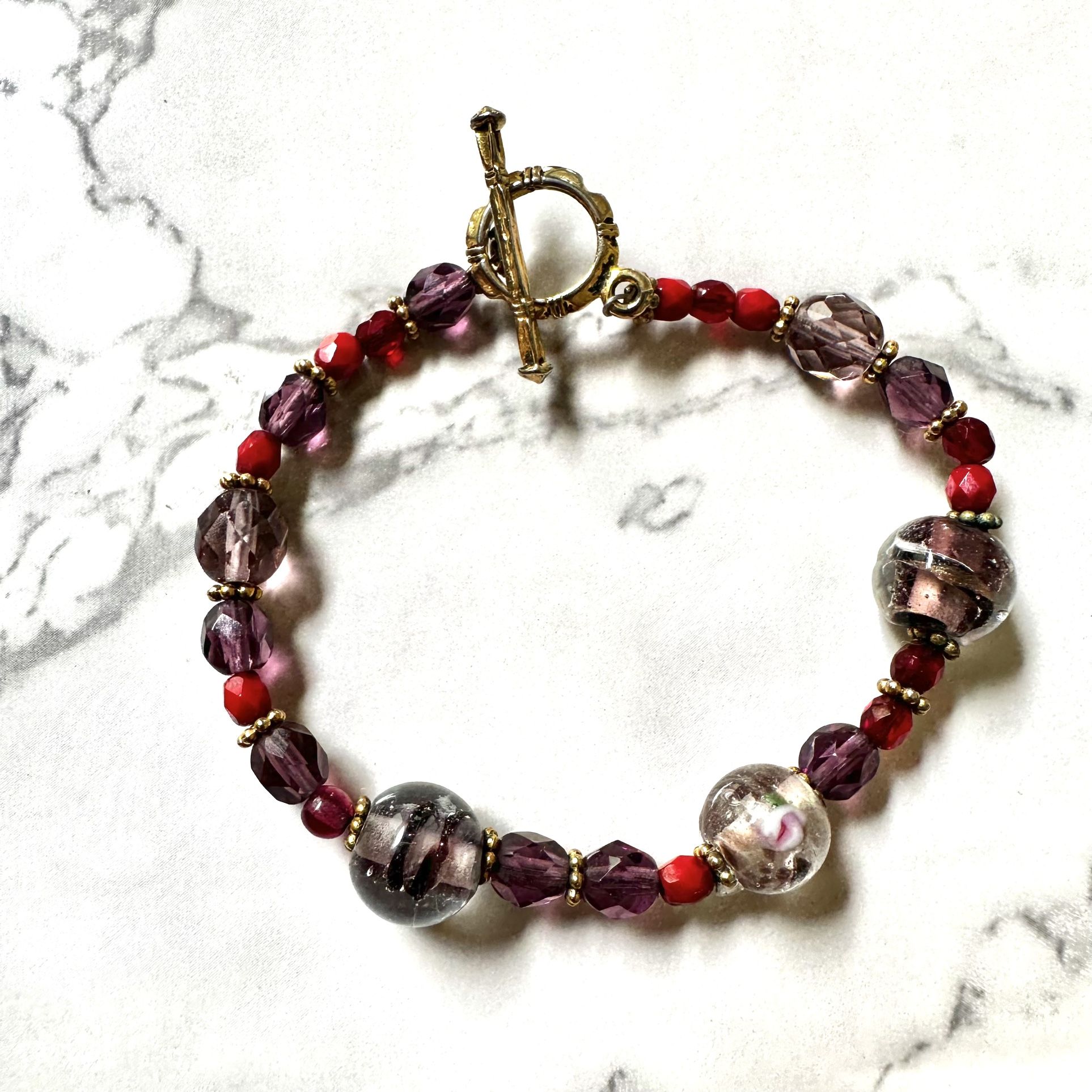 Purple And Red Beaded Bracelet