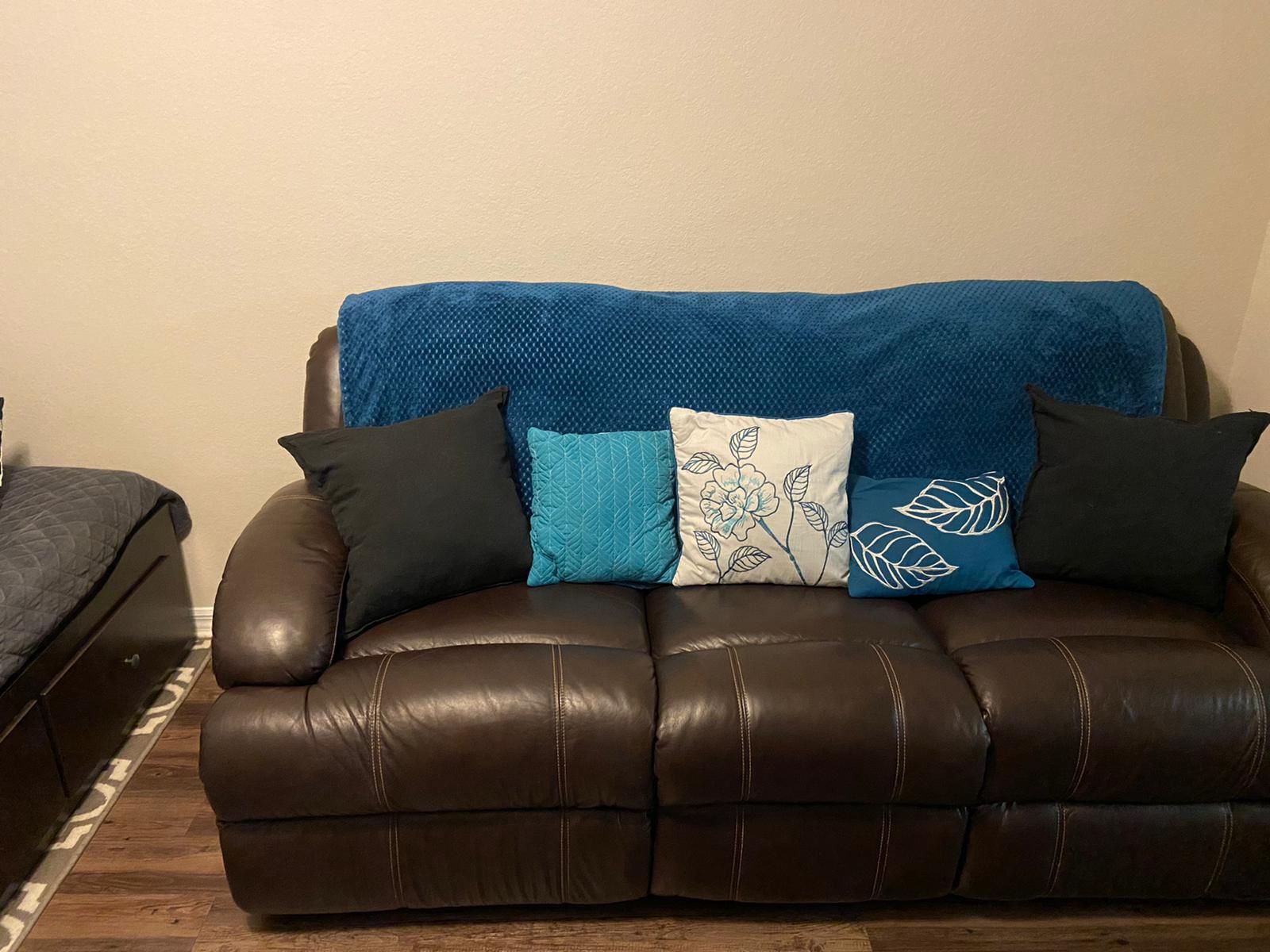 Reclining Faux Leather Couch./ Sofá Reclinable, Imitación cuero.