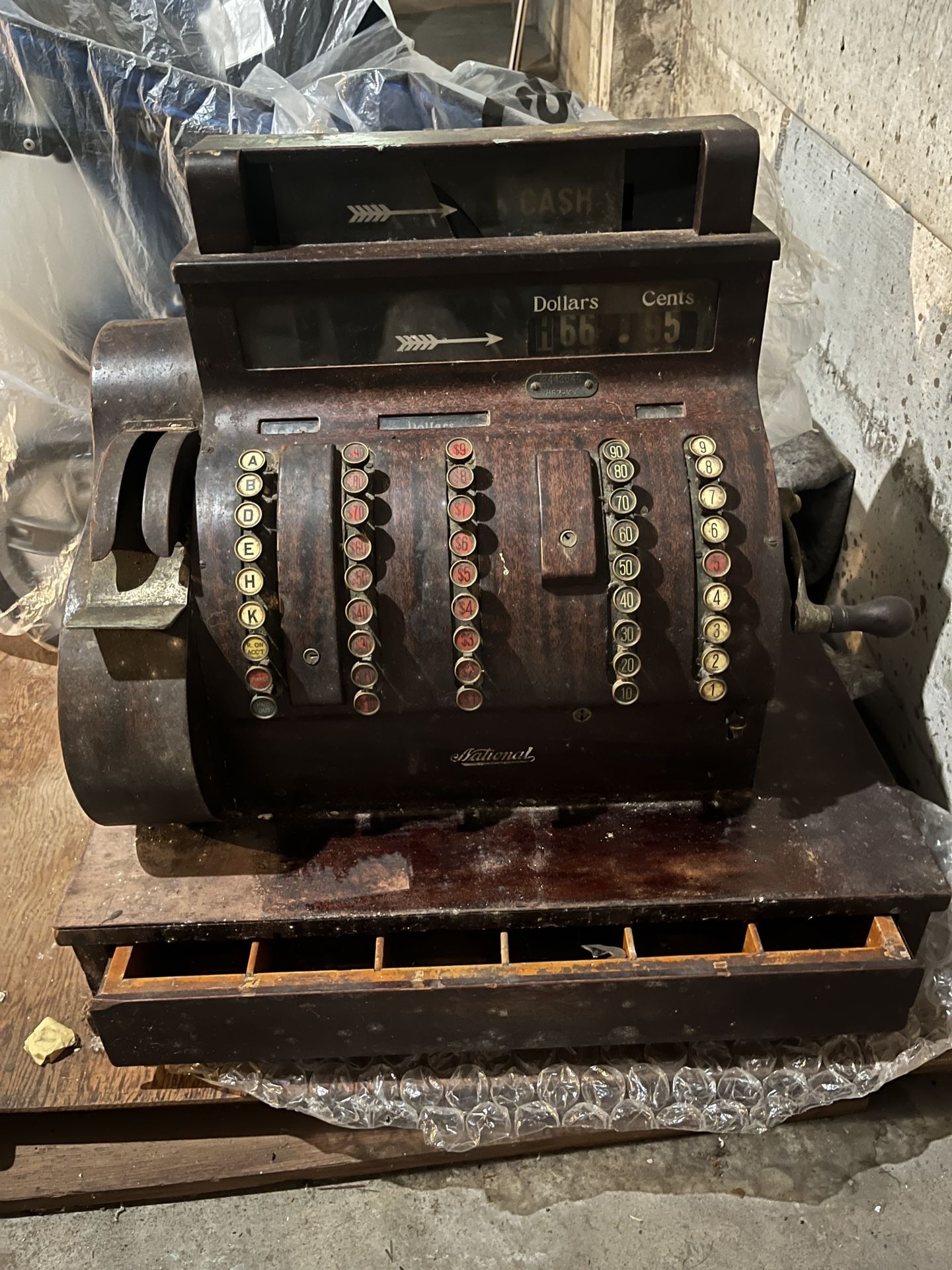 1923 National Cash Register - Model 852 - 25" w- 16.25" d x 24" h Wood and metal Needs some TLC It weigh about 150 pounds so you will need a couple people to move it up 15 stairs - it's in the basement. We cannot help you move it. CASH only. Parking not an issue. Can pull into the driveway or double park In San Francisco. Thanks.