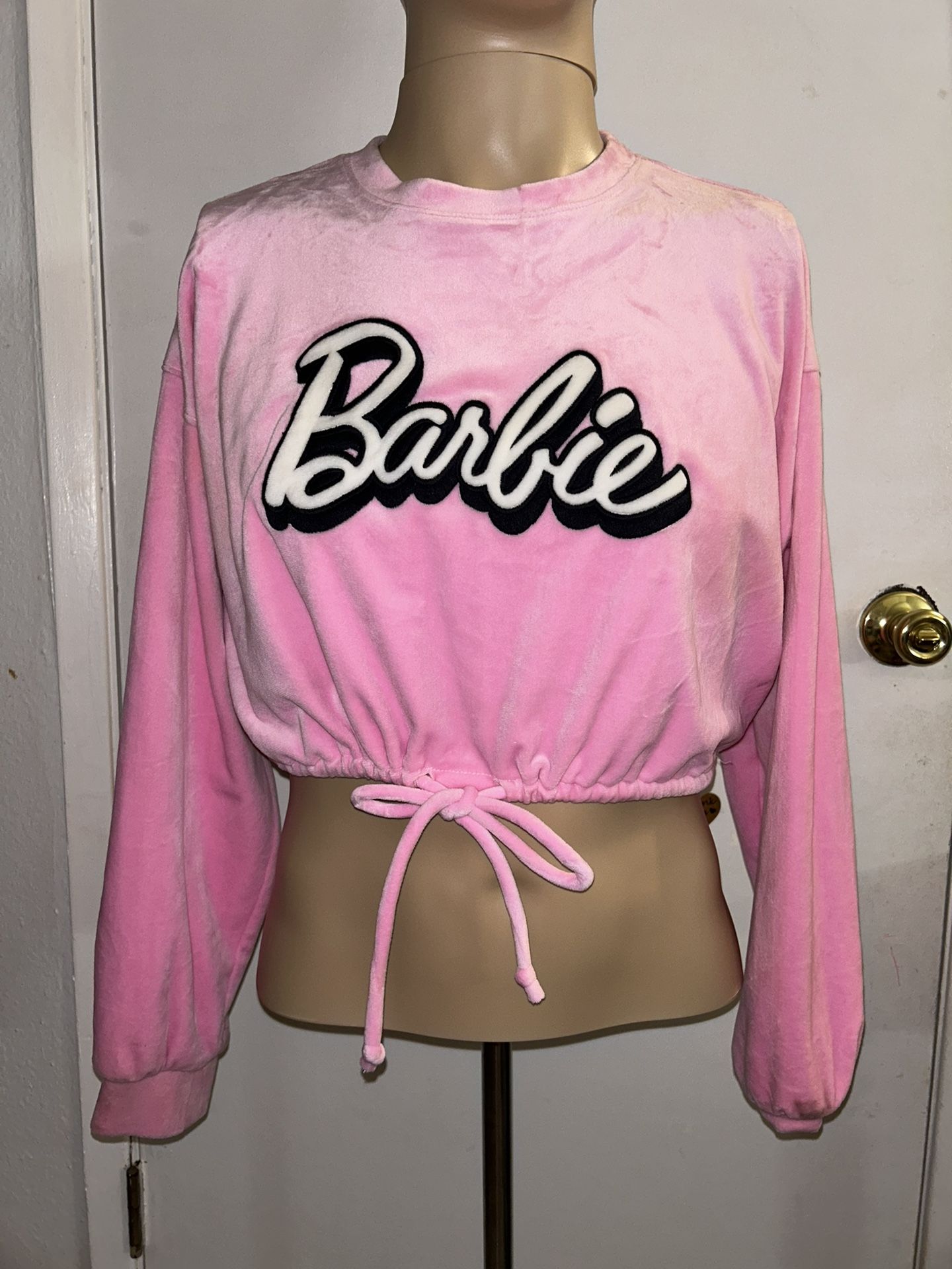 Forever 21 Barbie Velour Pink Pullover Crop Top Women’s Velvet Tiny Cut Sz S