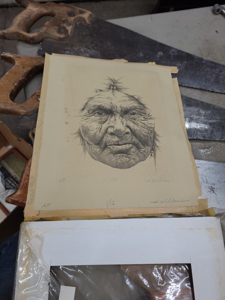 Old print. Indian man. Or Eskimo. Lot is numbered #1 of. Look at the signature. Woldman Taking offers. Dollar amount is there for interest please make an offer and be ready to come get it if we accept it