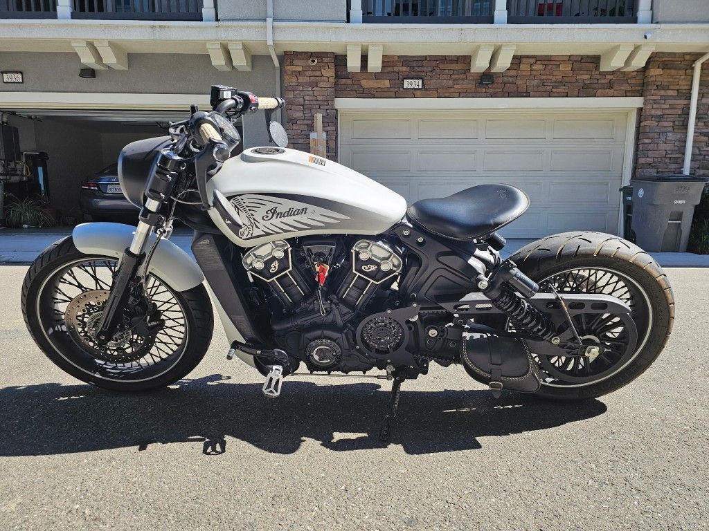 2021 Indian scout bobber. 1920 solo seat with rear fender delete. Custom HD wheels. Trask exhaust.