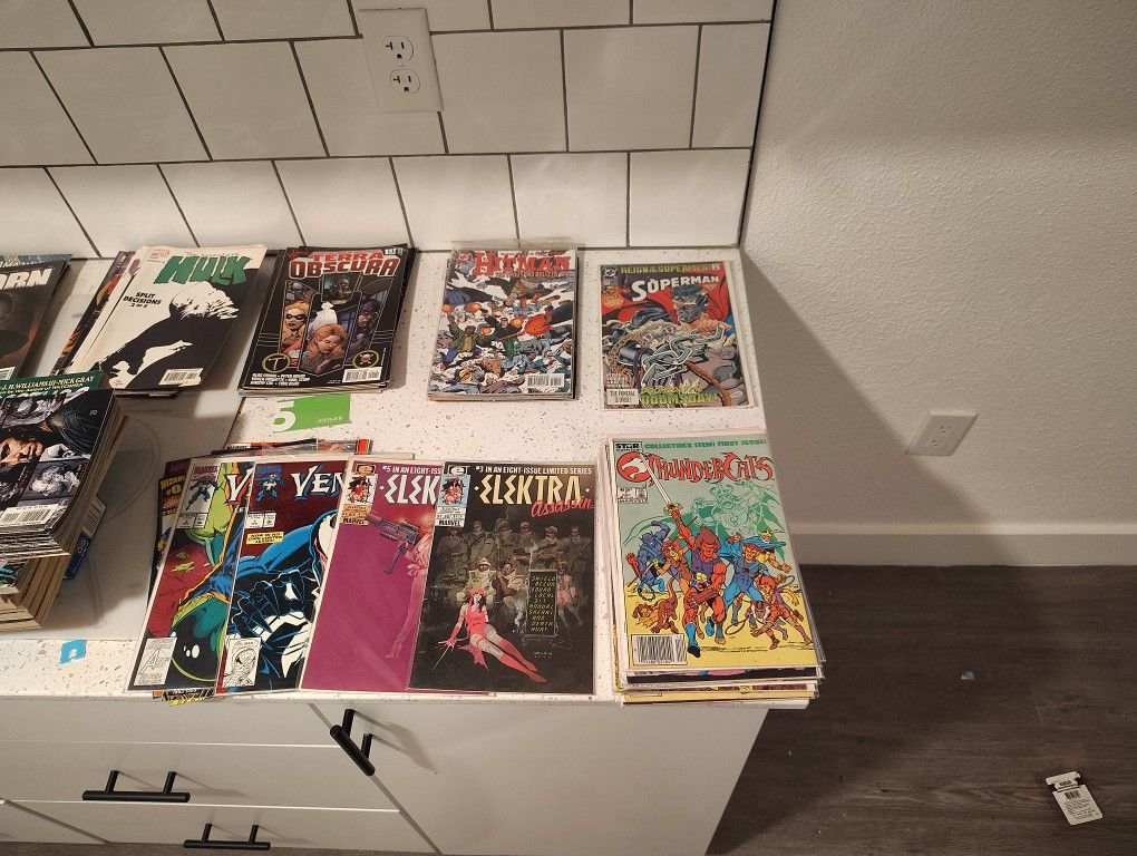 So I've about 215 comics all in near mint condition and/or sleeved and boarded and sealed. Ranging in dates from 1985 and up. Marvel, dc, epic, America's best, max comics, Star comics which are all my thundercats collection, all sleeved and sealed and boarded, along with the very 1st issue of thundercats, December 1st 1985.