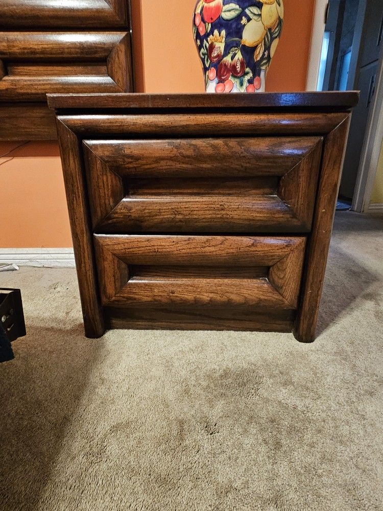 Great deal! 2 sturdy night stands with 2 deep drawers (each) for storage. 1 backboard Sold as a set for $70 Separately Night stands $40 Backboard $30