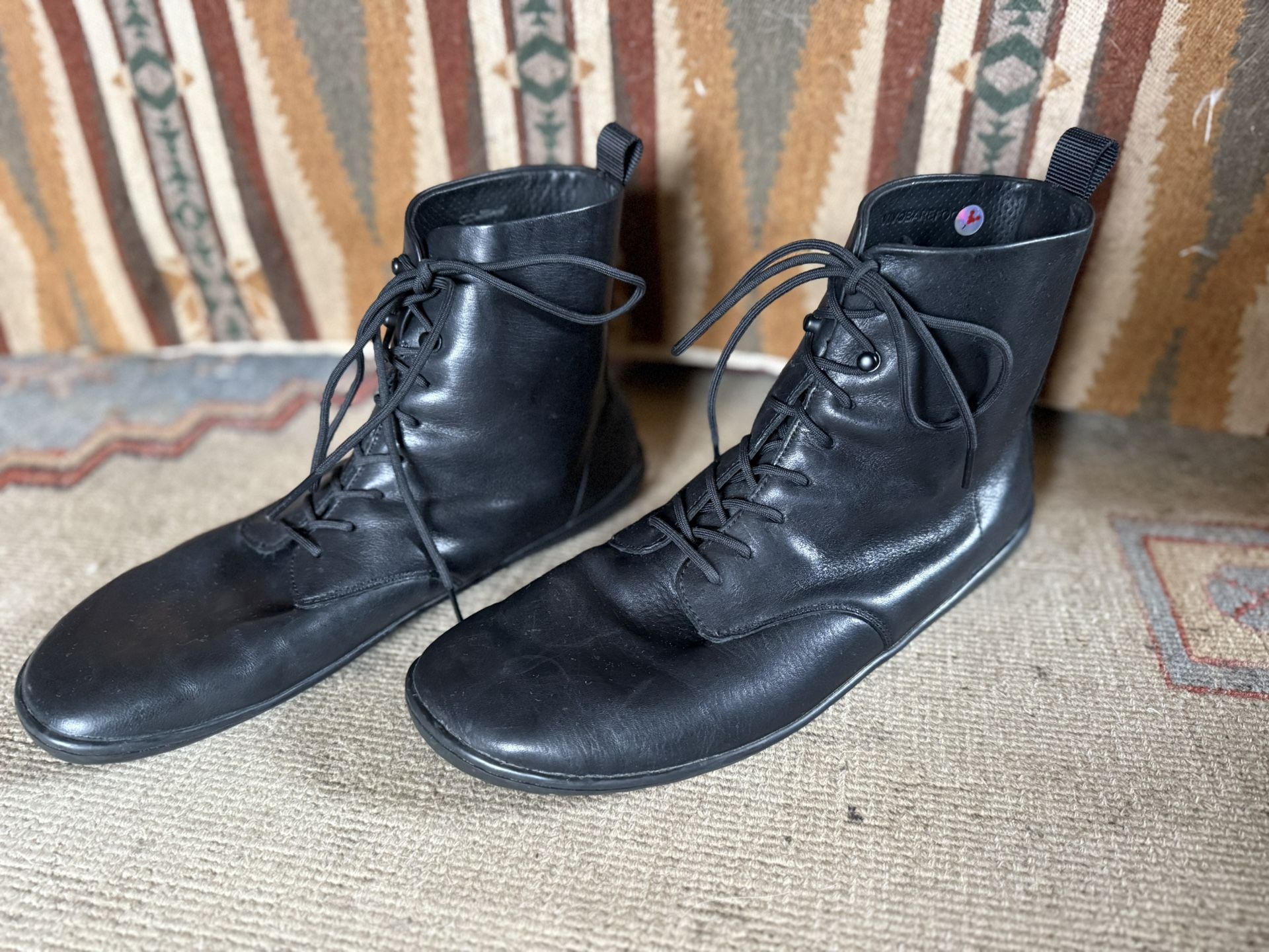 Size EU 42 black leather Vivo barefoot sheer lined boots. Thermal insole. Good condition, lightly worn. Leather is still sturdy and supple. Selling for $35