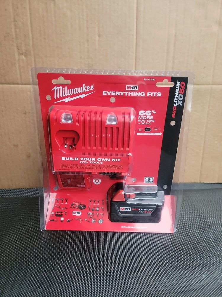 MILWAUKEE M18 18-VOLT LITHIUM-ION XC STARTER KIT WITH ONE 5.0 AH BATTERY AND CHARGER INCLUDED