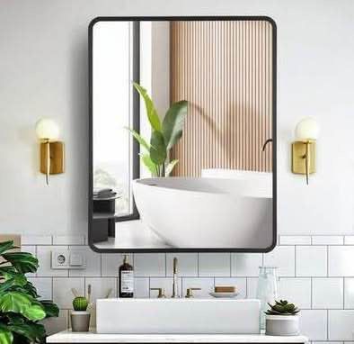 New 24 Inch x 30 Inch Black Metal Framed Bathroom Mirror Medicine Cabinet Rectangle Tilting