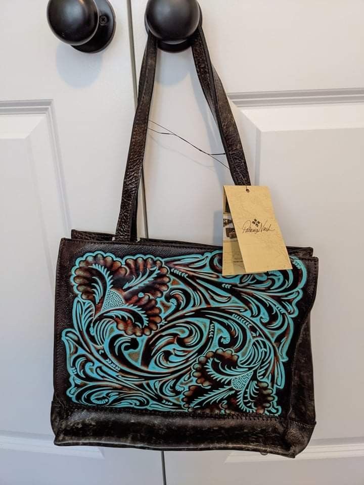 New With Tags Patricia Nash Turquoise Tooled Handbag Purse Tote New