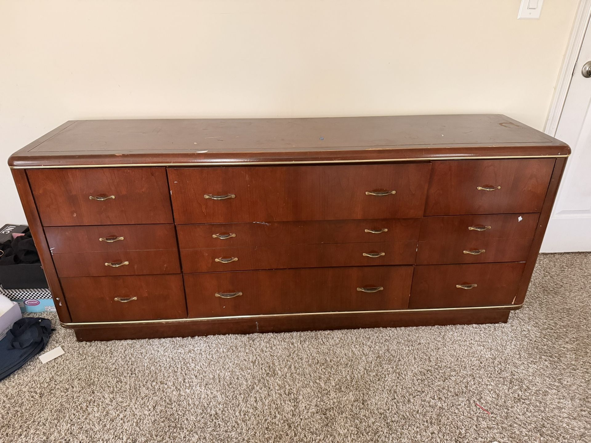 9 drawers all work great and are on track. Some marks on the top which are shown in the picture. Very good quality piece. Heavy piece and will need hauled by yourself. $250 OBO. Need gone by April 18th.