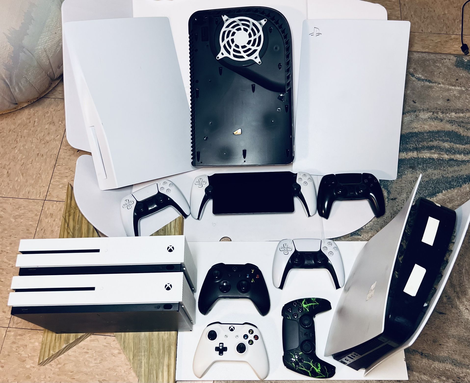 PS5 Disc V. ~ $350 (Comes with 2 controllers of choice or what's available) PS5 Disc V. ~ $ 400 with regular controller & black volt controller that has back paddles (controller cost $150) PS Portal ~ $ 1 5 0 Xbox One S ~ $ 1 0 0 Each (Comes with controller of choice or what's available) EVERYTHING WORKS LIKE NEW KEPT IN STORAGE FOR A YEAR UNTOUCHED.