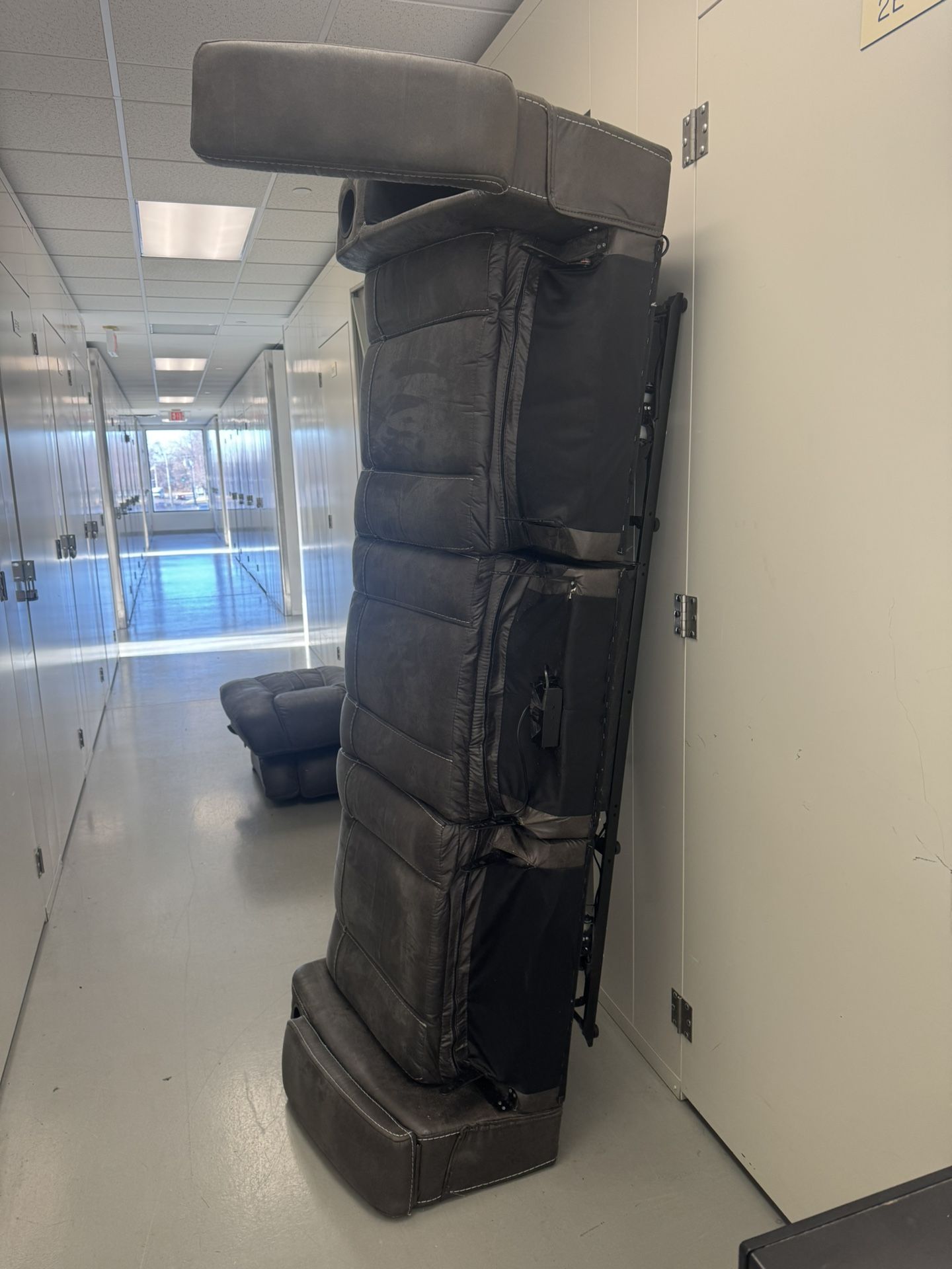 Normal wear and tear well taking care of one recliner is automatic the other one is manual. it have cupholders, storage, and charging port also a light in the center of recliner and the two seater rockers. No longer need the recliners.