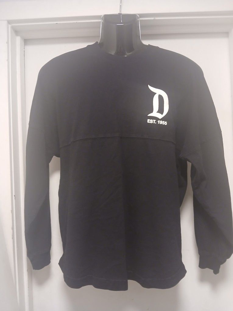 The Disney Parks Black Spirit Jersey is a unisex longsleeve in size small reading Disneyland resort. Authentic merchandise. This officially licensed apparel is perfect for adult fans of the Disney franchise, with a classic black color and comfortable fit suitable for both men and women. Add this stylish Spirit Jersey to your Disney collection to showcase your love for Mickey Mouse and this beloved theme park chain.