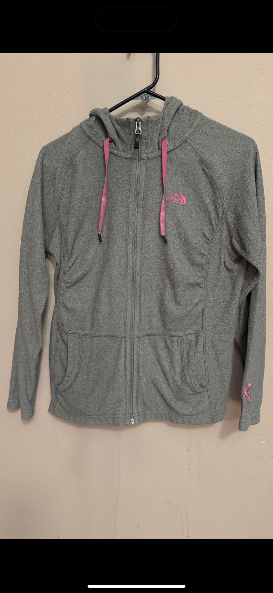 Womens Medium The North Face Breast Cancer Awareness Grey Pink Fleece Zip Up