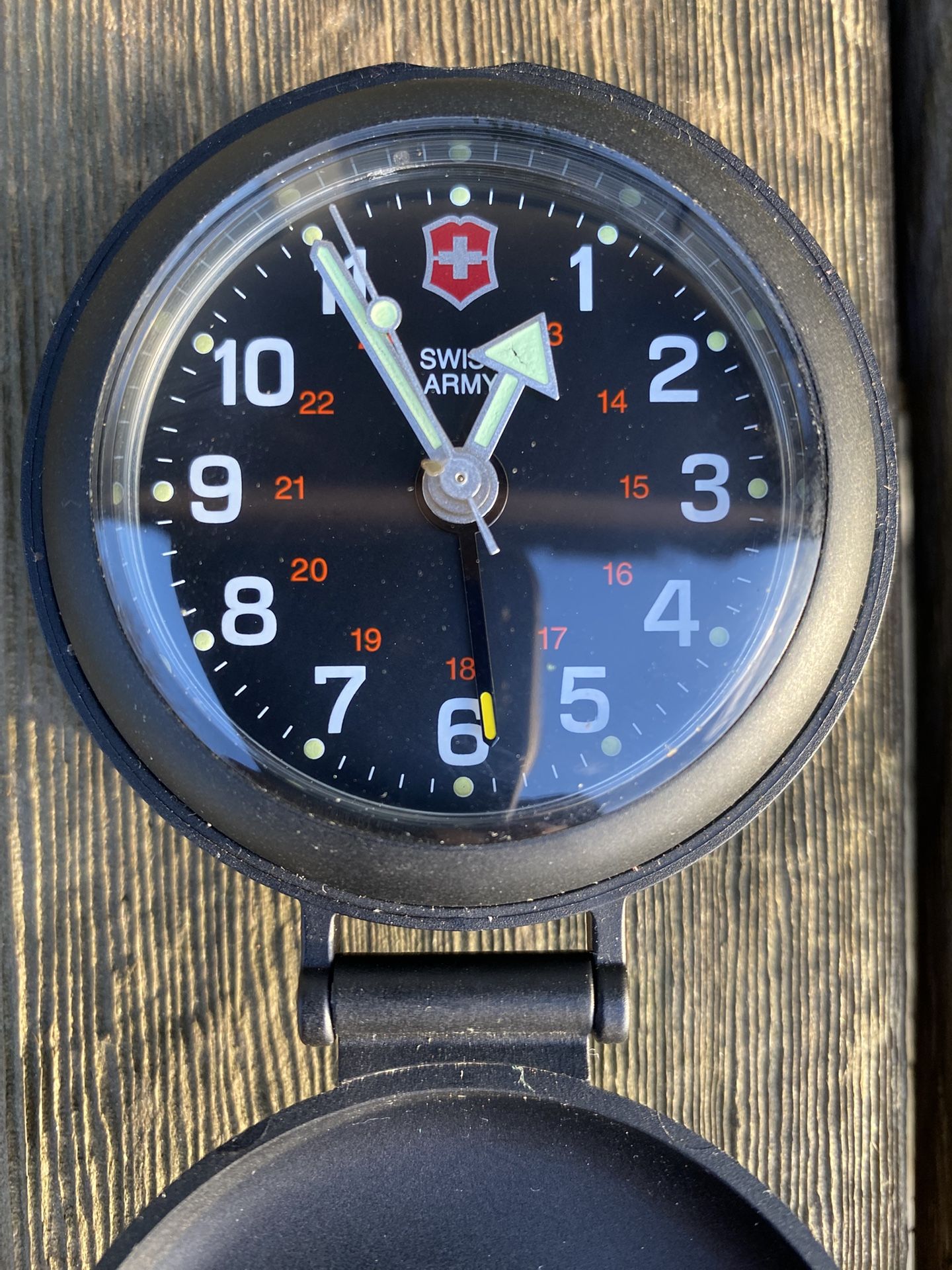 Victorinox, Swiss Army original travel alarm clock in excellent condition.