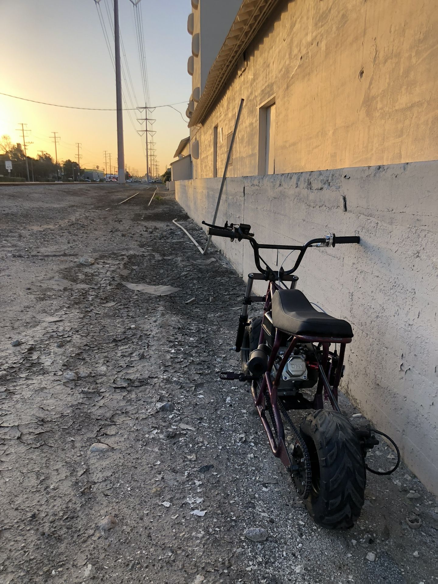 Mega moto frame 420 chain Upgraded sprocket Hydraulic break 212 predator engine Governor delete Aluminum flywheel Oil sensor removal 28mm pwk (tuned) Upgraded frp suspension kit Exhaust with removable muffler Down for trades lmk what you got Runs very good new motor lmk for videos NO LOW BALLS LET ME KNOW FOR REAL
