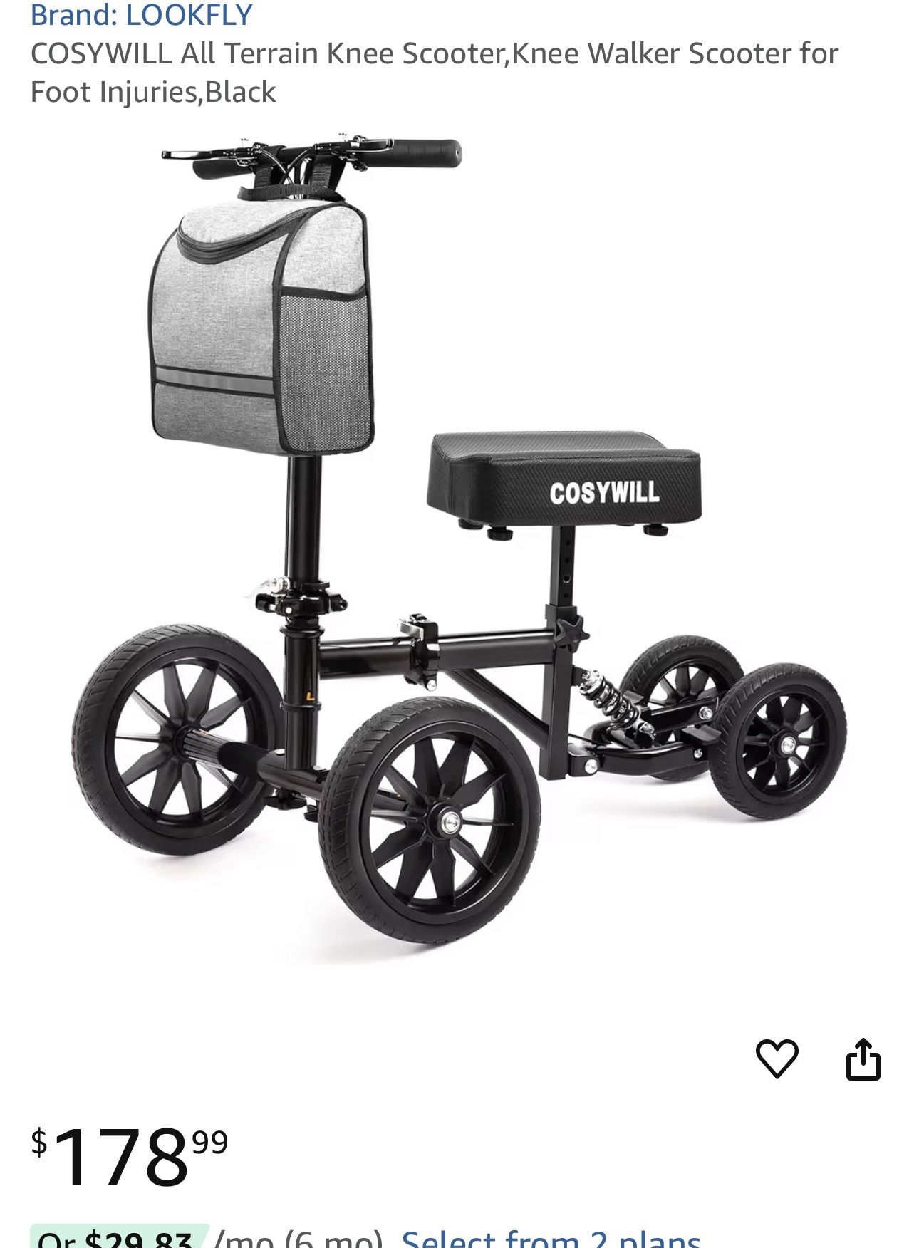 COSYWILL All Terrain Knee Scooter,Knee Walker Scooter for Foot Injuries,Black