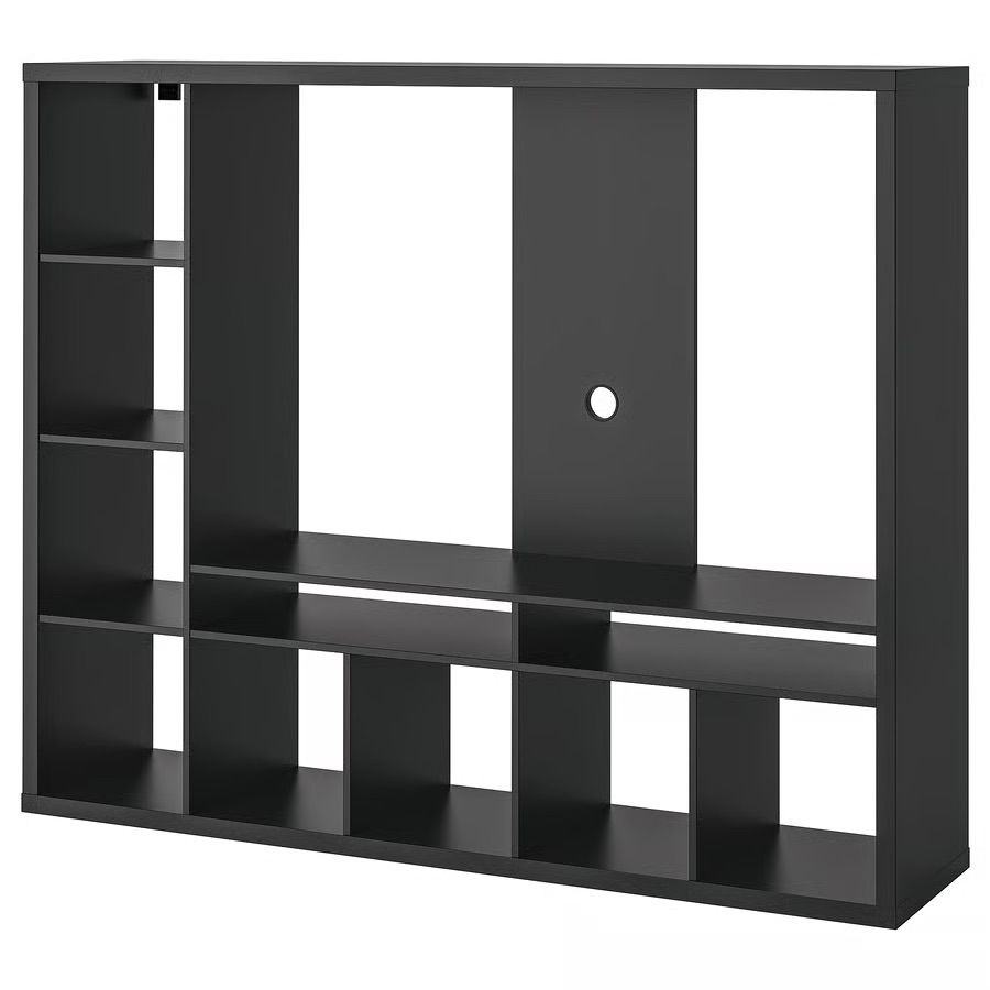 Selling our versatile IKEA Lappland entertainment center in the popular Black-Brown finish. This is a complete media solution with massive storage for books, gaming consoles, and decor. Customizable Layout: The side shelving unit can be installed on either the left or right side to fit your space. Massive Storage: Features 8 storage cubes (fits IKEA Kallax/Branaes bins) and two open media compartments for players/consoles. Integrated Cord Management: Features a reinforced back panel and built-in cable outlets to keep all wires hidden and organized. Dimensions: 72" W x 15 3/8" D x 57 7/8" H. TV Capacity: Fits most flat-screen TVs up to 60 inches (Max load: 55 lbs). Condition: Sturdy and well-maintained. From a smoke-free/pet-free home. Price: $60 (Cash or Zelle) Pickup: Urbana (near Crystal Lake Park). It will be disassembled for easy transport and will fit in most large SUVs!