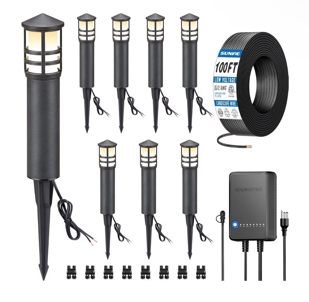 All-in-One LED Landscape Lighting Kit, 8-Pack Low Voltage Pathway Lights with Transformer and 100FT 16/2 AWG Wire, 3000K Waterproof Landscape Lights with Connectors for Walkway Garden Yard. F 🔴.