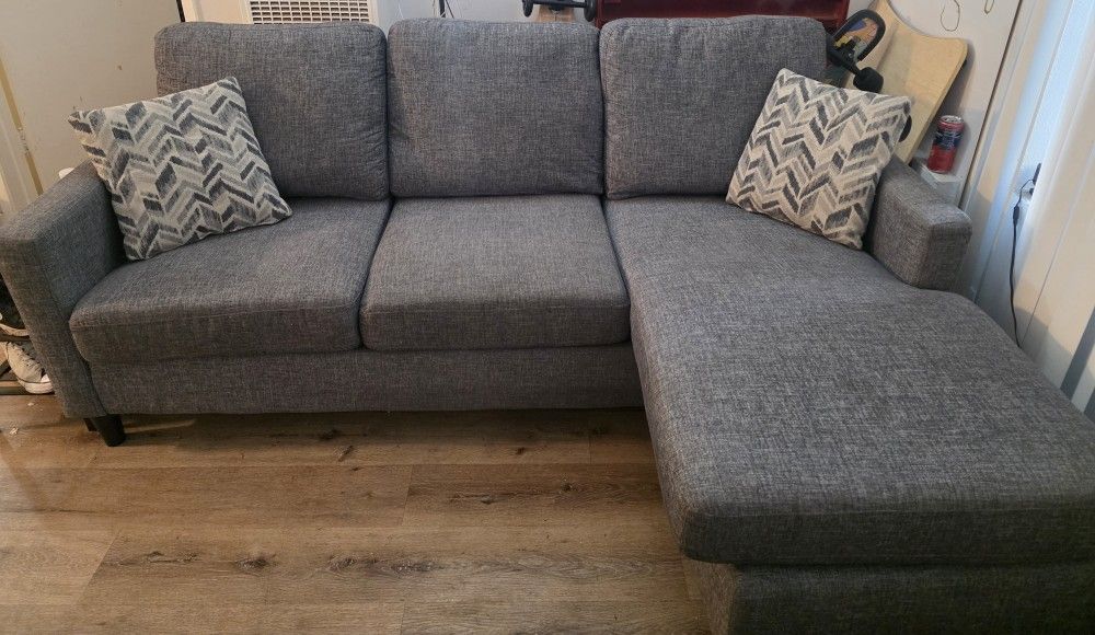 Living Spaces Stark Dark Grey 80" Fabric Sofa with Reversible Chaise