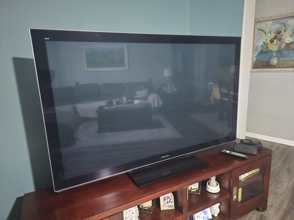 This is a classic 65" top of the line, when it came out, Plasma TV Works very well, great picture! To this day never had a problem with it. It has a 3D feature and is considered a smart TV. You can place a flash drive directly into the TV to view personal videos and pictures. Model # TC-P65VT30