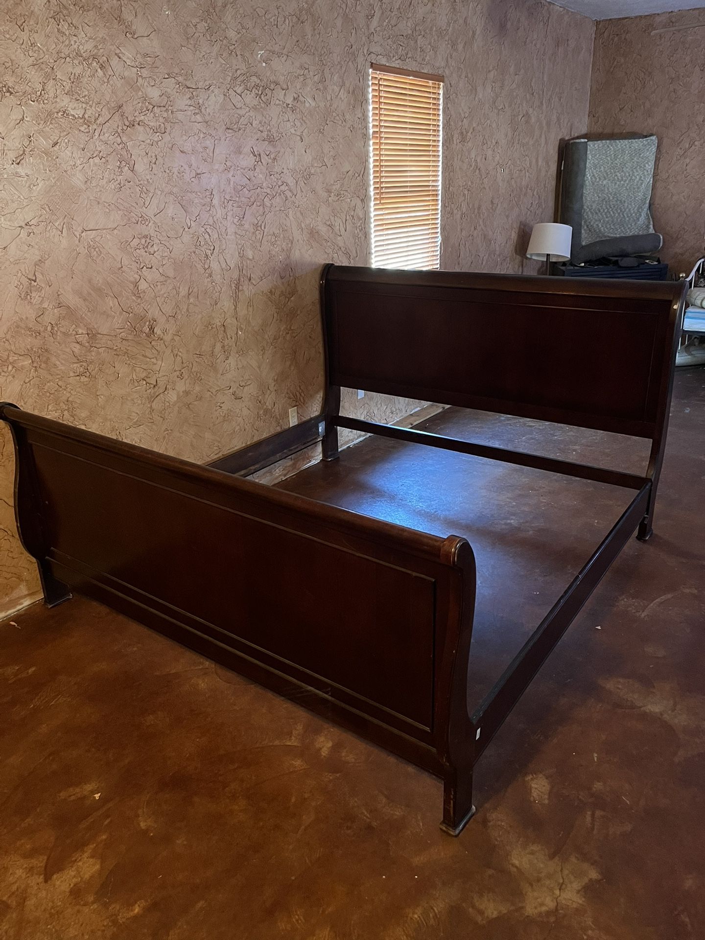 Cherry oak king size bed frame good condition has few scuffs unfortunately no slats come with150$