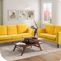 2 PIECE SOFA LOVESEAT SET YELLOW VELVET COUCH SET