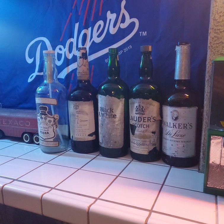 They're around 19 inches tall great for man cave 5 old empty bottles Selling all 5 for $65