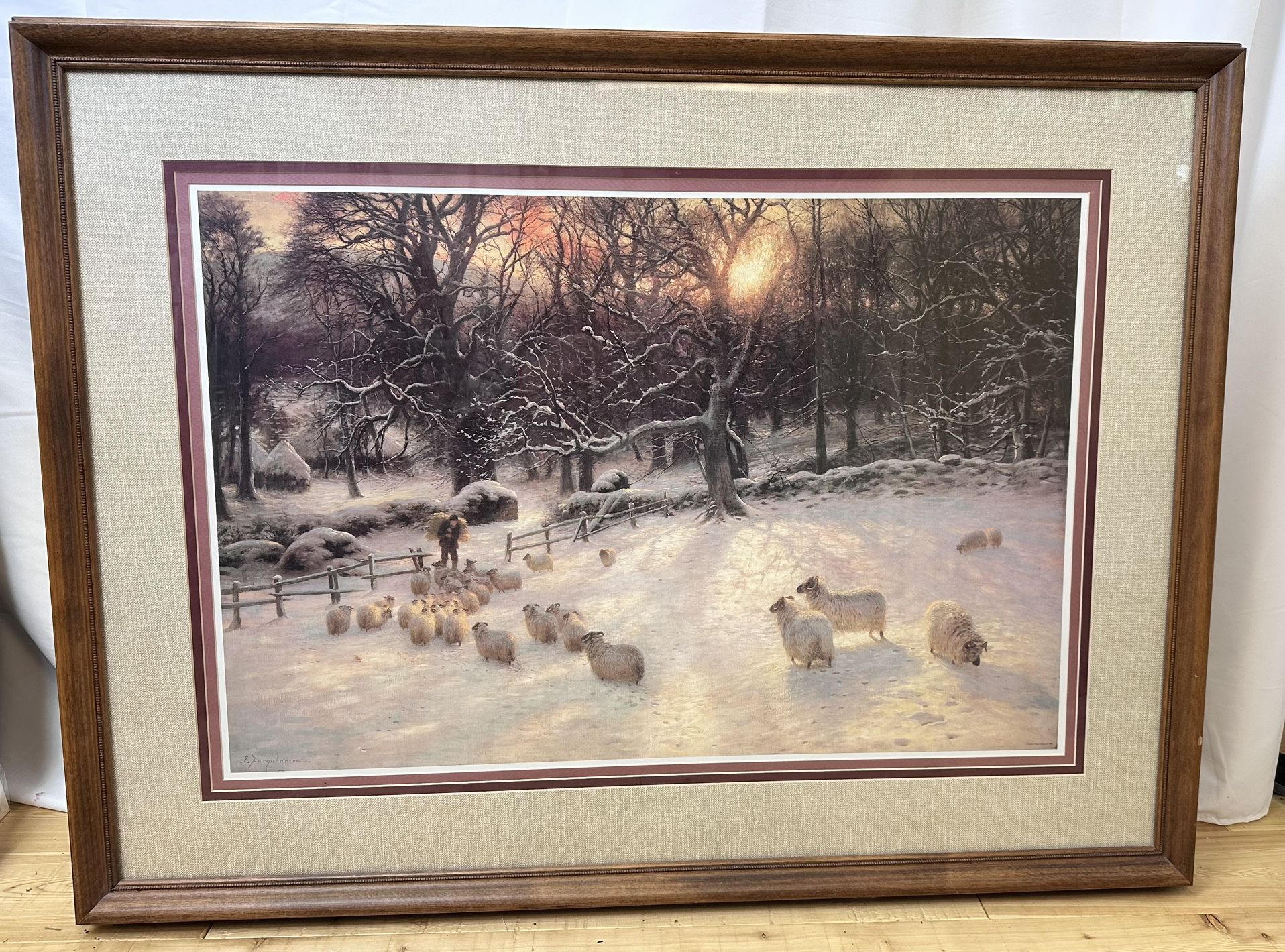 “The Shortening of Winter’s Day is Near a Close” by Joseph Farquharson, a beautiful winter scene of sheep and a boy bringing them hay in the snow. Double matted and professionally framed in a gorgeous detailed wood frame. Print by Venture Prints 1985. Excellent condition, ready to hang and enjoy! 28” x 38” Can meet in Vancouver/Portland area Cash, Venmo, PayPal, credit card