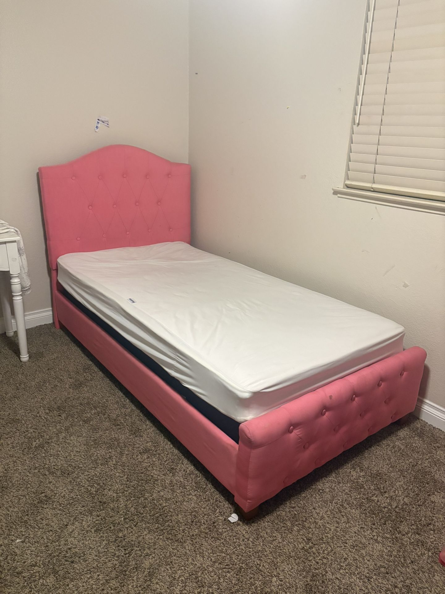 I’m just selling the pink bed frame, that’s it. Nothing else. It’s in great shape still