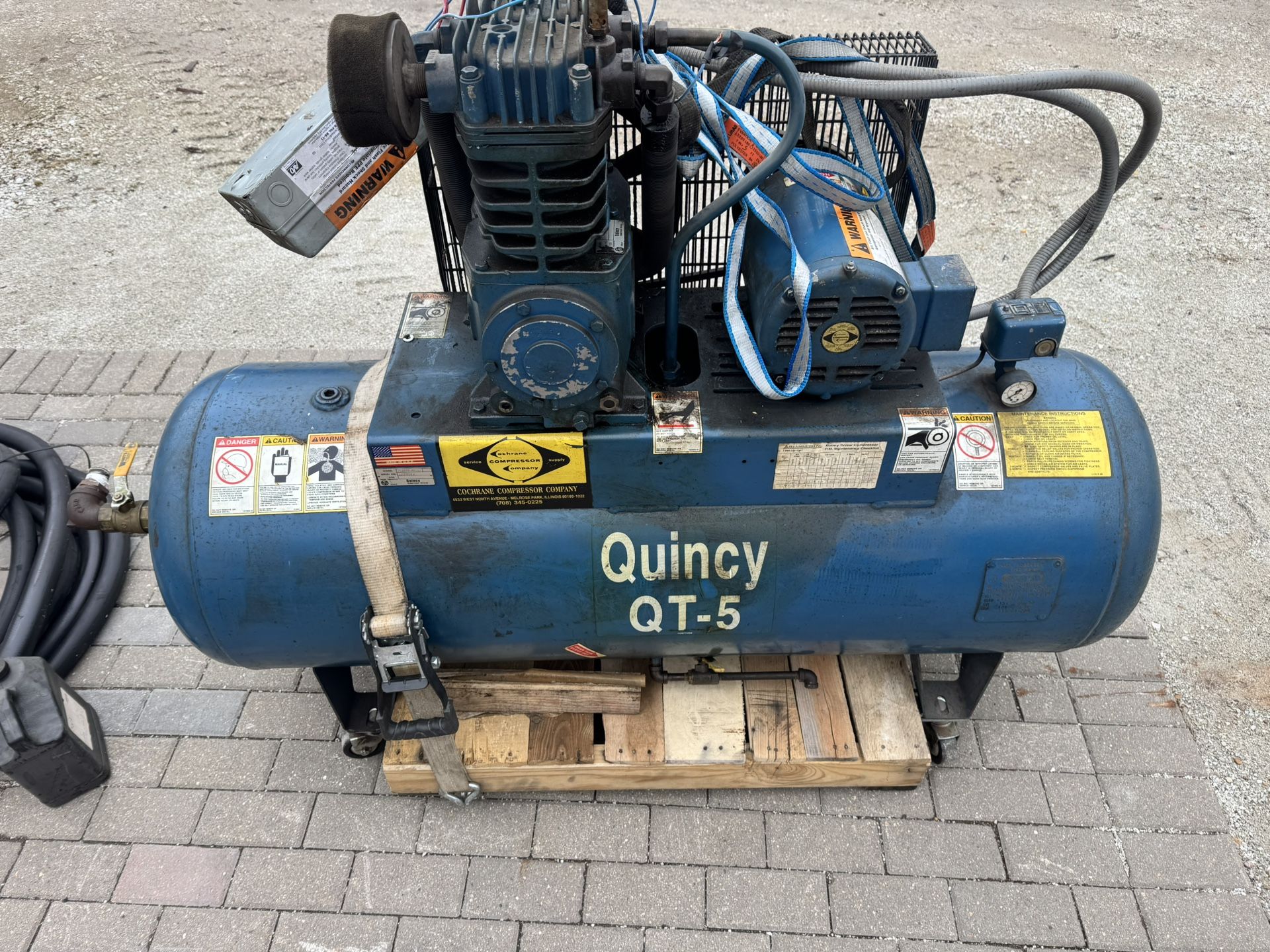 Good working condition -Quincy air compressor with additional hose connection ( To add another tank)