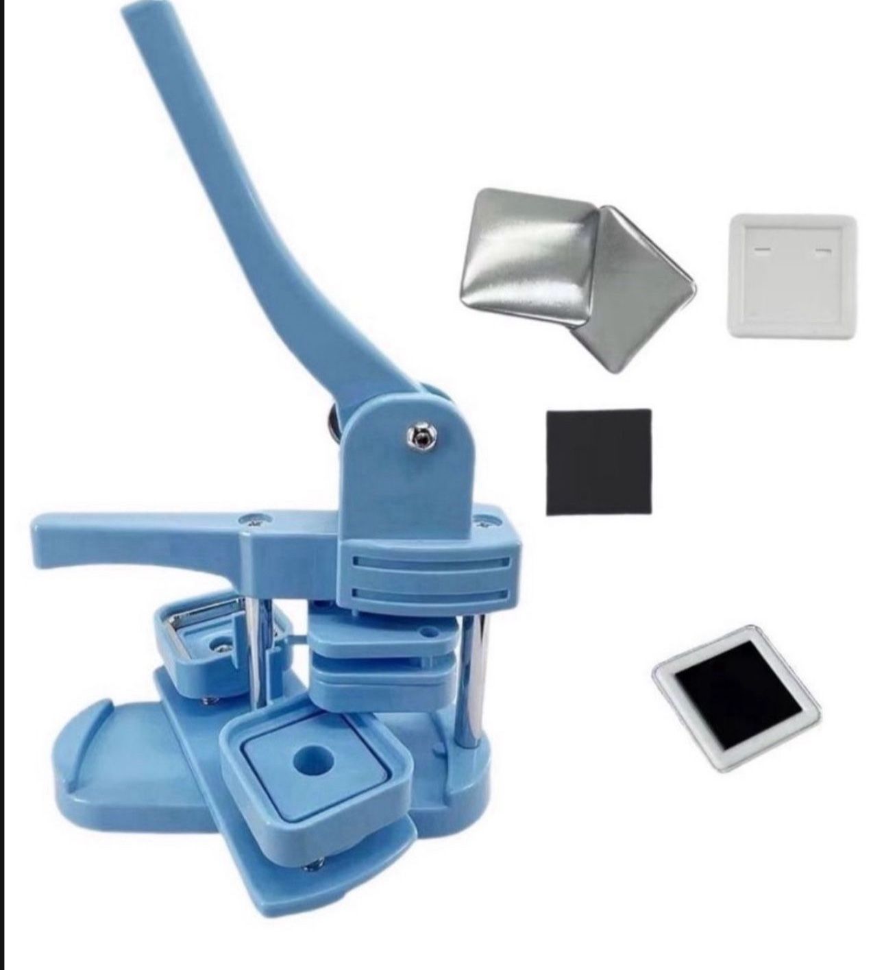 Fridge Magnet Maker, 2'' x 2''. DIY Square Photo Magnet Button Maker Includes: 40 - White Plastic Backs 40 - Metal Covers 40 - Square Magnets Note: You’ll still need Plastic Film Covers. Must Sell. Make Offer. Must Pickup.