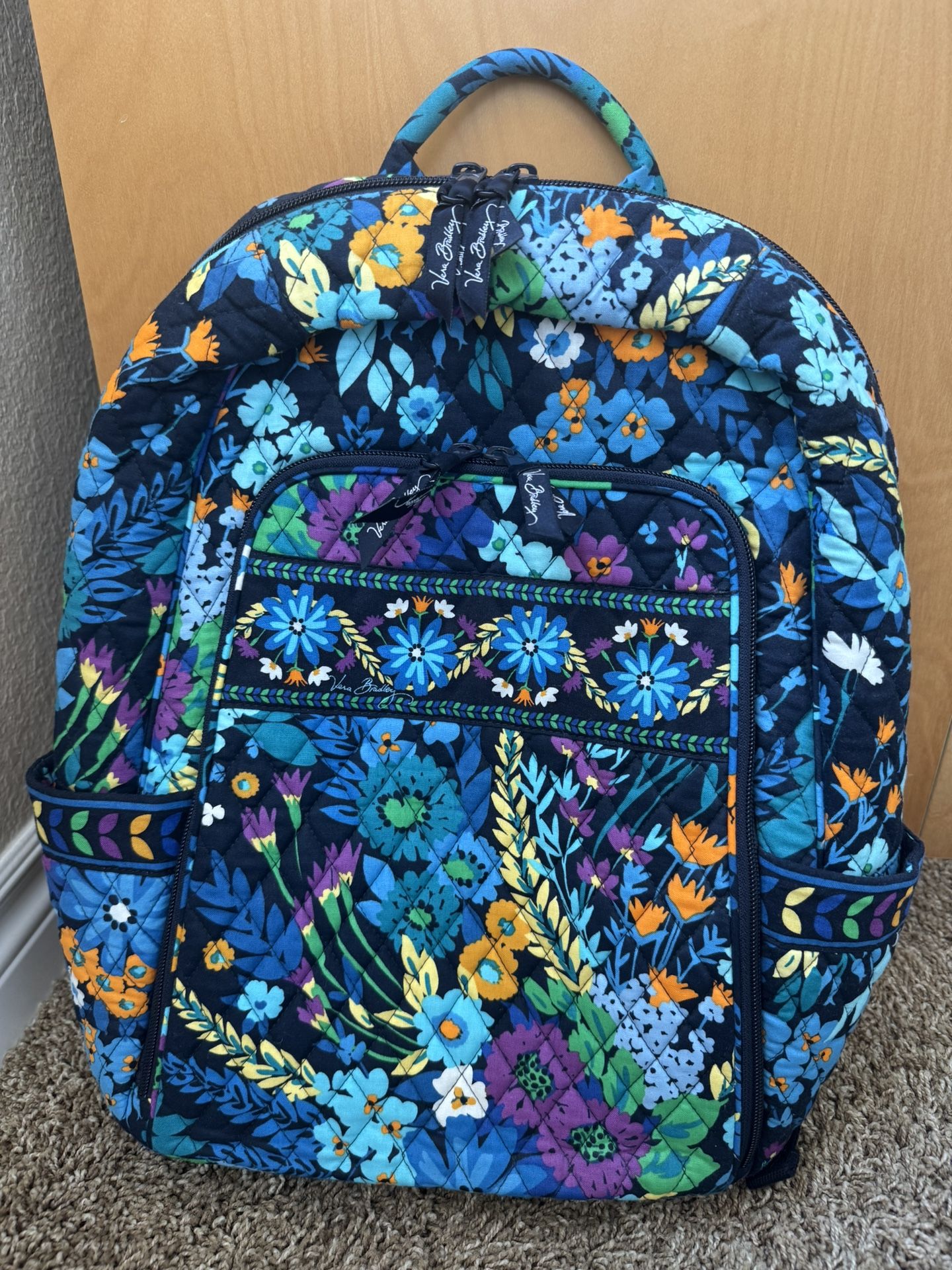 NEW Vera Bradley Midnight Blues Adjustable Campus Backpack Laptop Bag 17”x14”x6”