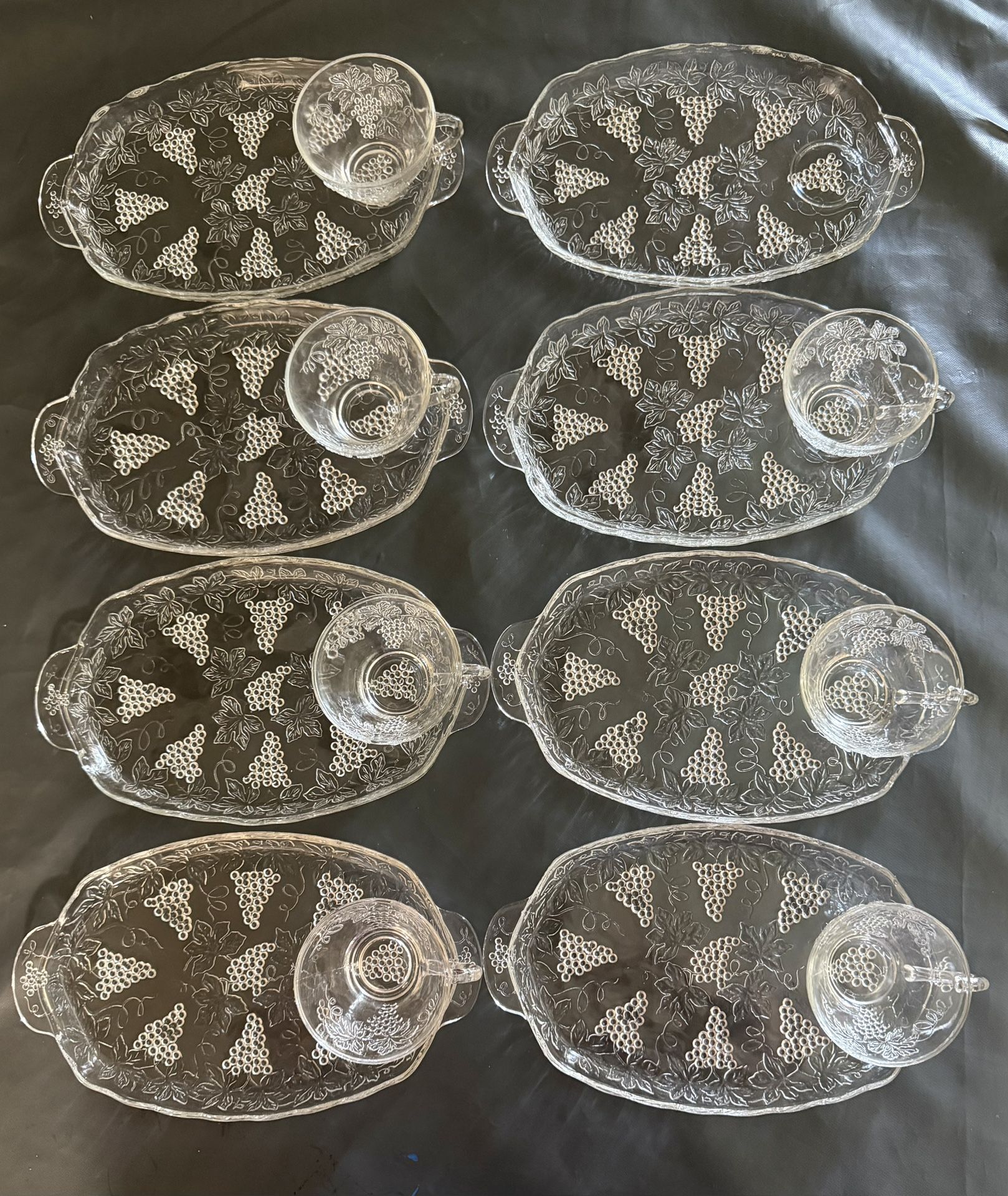Vintage Anchor Hocking Grape Snack Plate And Glass Set