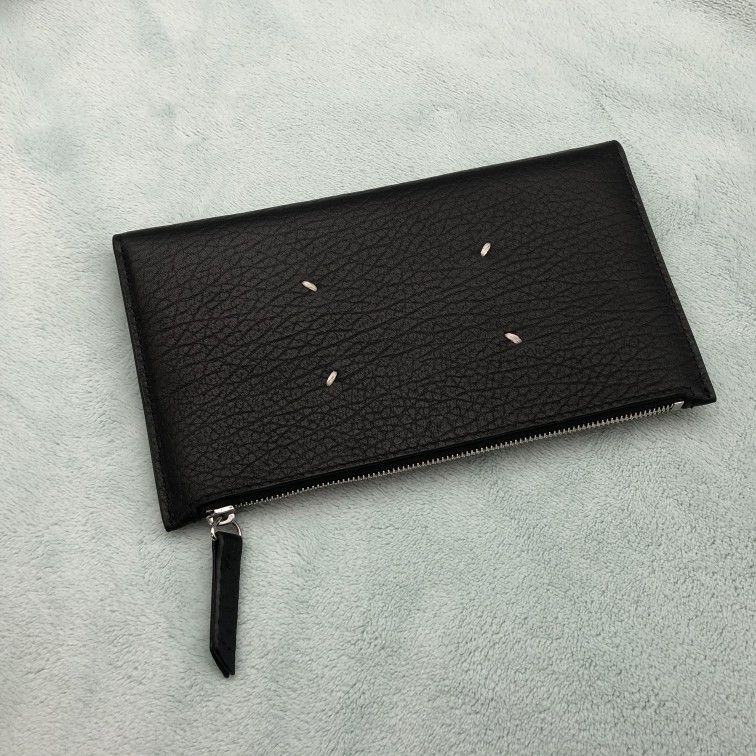 Brand new,comes with dust bag! 100% leather long wallet. 8 card slots, center coin zip, classic stitches on front of wallet, silver hardware, leather pulls on zipper.