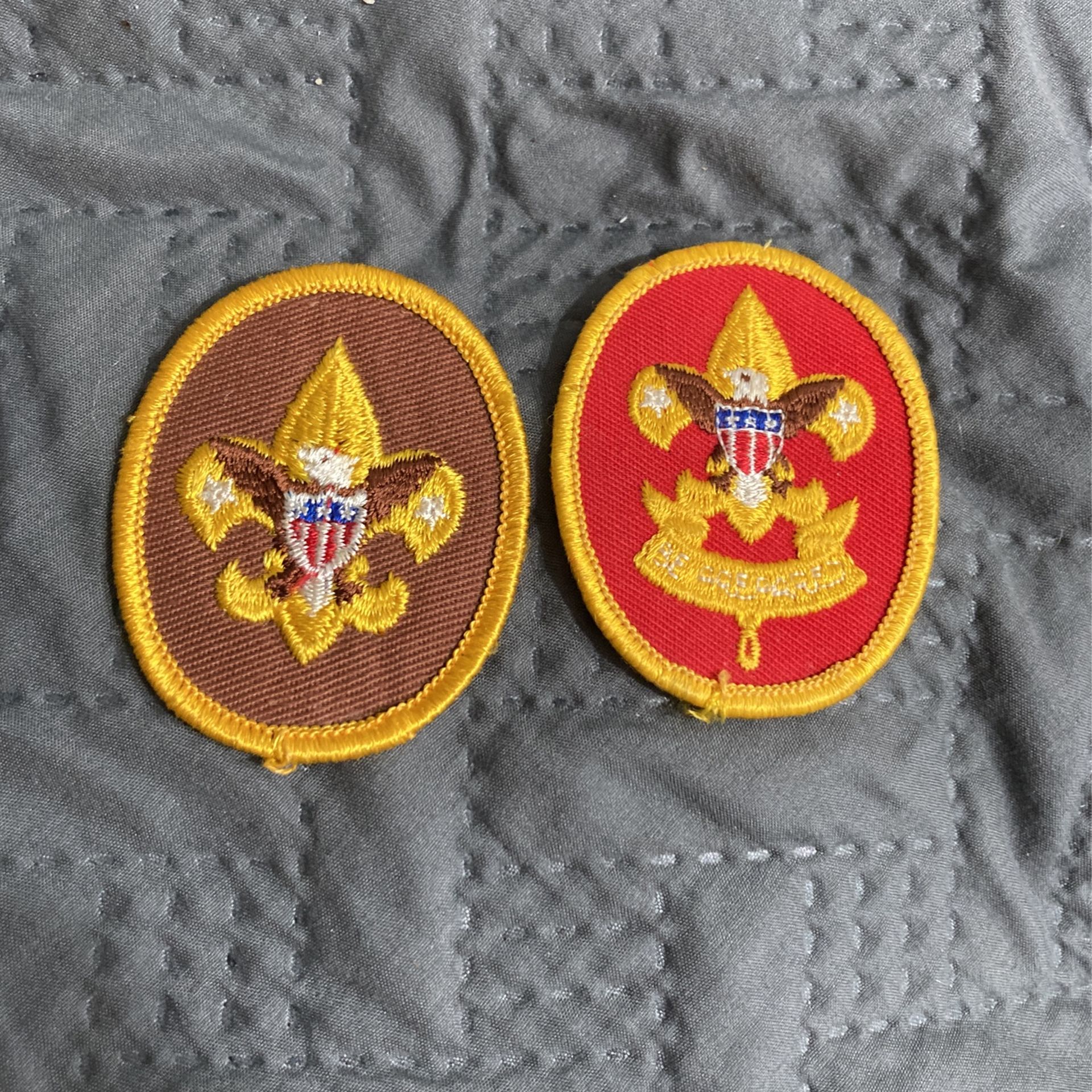 patches are in good new condition check out my other listings. Thank you. Added a first aid slight on metal Boy Scout emblem on the back does have some ware
