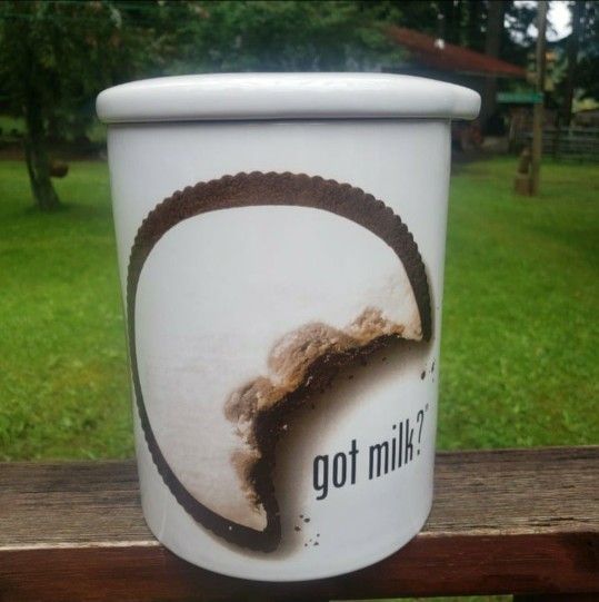 1999 Got Milk? Oreo Cookie Jar. On the bottom says, At Home International, got milk?, 1999 California Milk Processor Board, Made In Thailand. This is in pretty good shape for it's age. Has a whole Oreo on one side and then an Oreo with a bite taken out and open exposing the delicious filling. The lid says, 'got milk'. Cermaic. Has 3 very tiny imperfections that are hard to see unless you REALLY look: Imperfections #1 seen in picture 10 Small dot looks like some of the cookie print came off (somehow). Imperfections #2 seen in picture 11 Light scratch looks like something else was rubbed against it. Imperfections #3 seen in picture 12 Has a tiny black speck/dot on the got milk? lid. Still in really good shape for being 26 years old. Lid fits perfectly with the cookie jar base! Tad dirty on the bottom from movie. 5.5 pound without packaging will be packed very carefully. -Measurements- [Top of Lid to Bottom: 8.5" Tall] [Diameter: 6.5"]