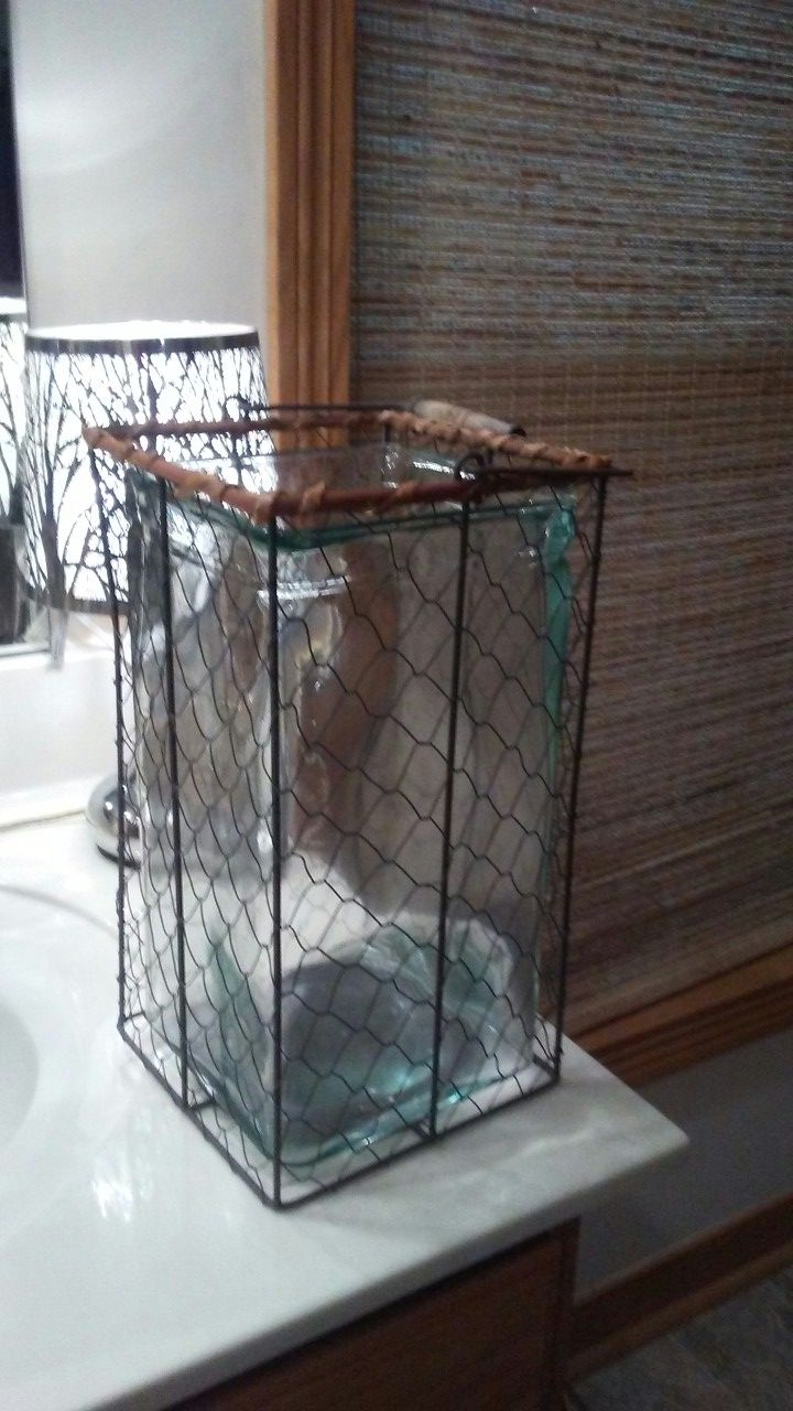 Wire container with heavy glass insert
