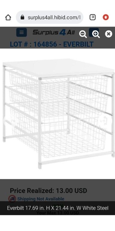3 drawer white steel wire basket 17.67 H x 21.44 W x 17.13 D 1 large basket 12.875 W x 20.75 Dx 7.25 H 2 Small Baskets 12.875. W x 20.75 D x 3.25 H Stackable