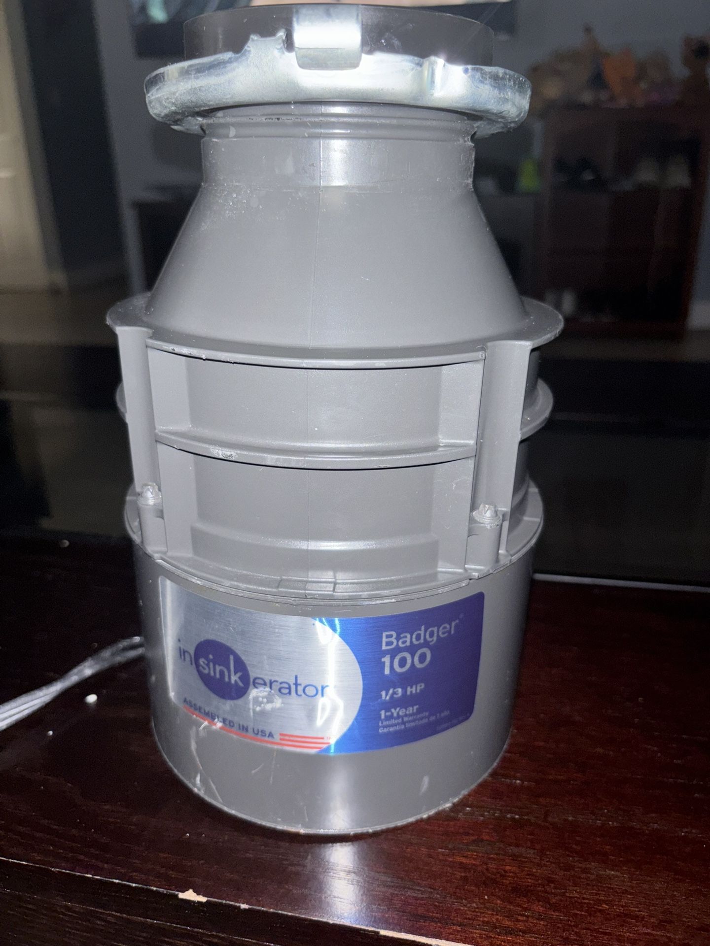 Used Reliable InSinkErator Badger 100 (model Badger 100‑2) 1/3 HP continuous‑feed garbage disposal in good working condition. POWER CABLE INCLUDED!!! • 1/3 HP Dura‑Drive induction motor – dependable everyday performance for typical household scraps • Continuous‑feed design so you can run water and add food while it’s operating • Includes attached discharge pipe and rubber splash guard for easier install • Standard 120V, 60 Hz operation, 5.6 amps This is a great budget‑friendly and performing garbage disposal replacement if your existing disposer isn’t strong enough and needs it without paying full. For more info about this product, visit: https://offerup.com/redirect/?o=aHR0cHM6Ly93d3cuaG9tZWRlcG90LmNvbS9wL0luU2lua0VyYXRvci1CYWRnZXItMTAwLVN0YW5kYXJkLVNlcmllcy0xLTMtSFAtQ29udGludW91cy1GZWVkLUdhcmJhZ2UtRGlzcG9zYWwtQmFkZ2VyLTEwMC8yMDMxNDQ0OTA=