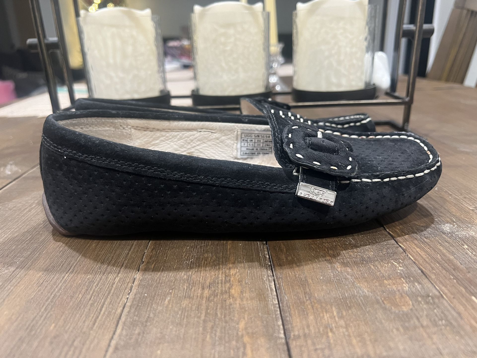 Ugg Loafers Suede Moccasins Leather Black shoe Size 7 Pre- owned