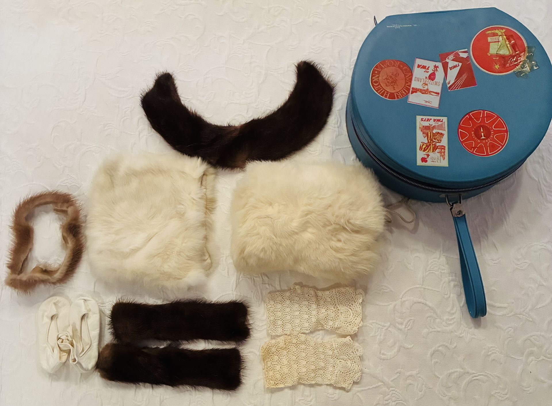 Infant/Toddler/Pre-School;Fur-Hand Warmer,Head Cap,Neck & Wrist Bands,Collar.Lace Wrist Bands.Leather Baby Shoes Size2.Carrying Case.