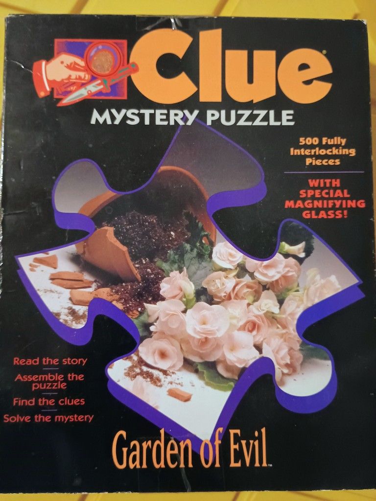 Clue Mystery Puzzle Garden Of Evil 500 Piece With Magnifying Glass.