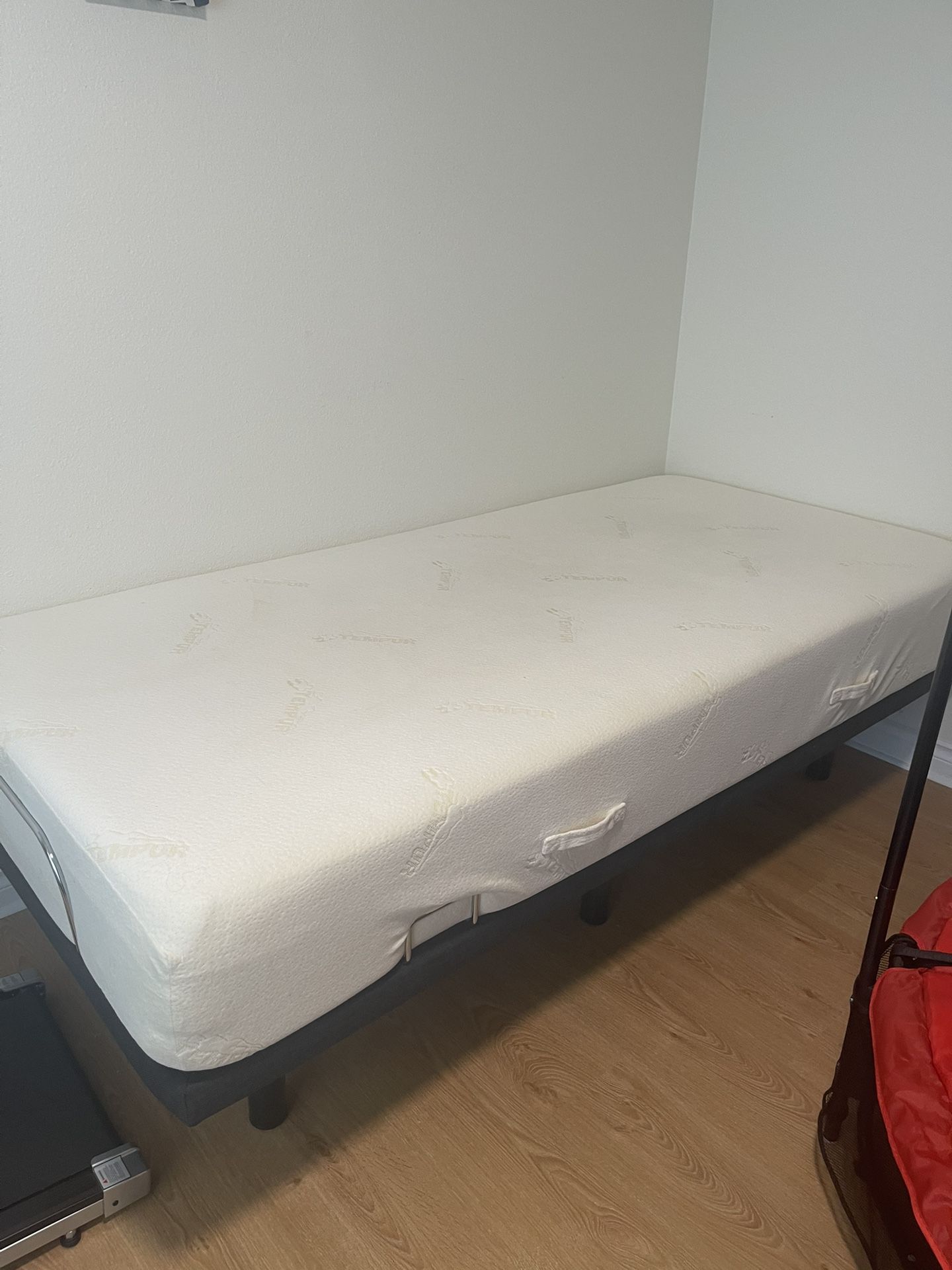 Twin memory foam mattress with sleep science adjustable electric bed frame. Very good quality mattress and bed frame comes with remote. Everything in working condition. Asking $320. Must pick up.
