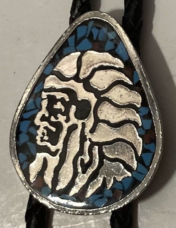 Vintage Bolo Tie Native Man Turquoise Design