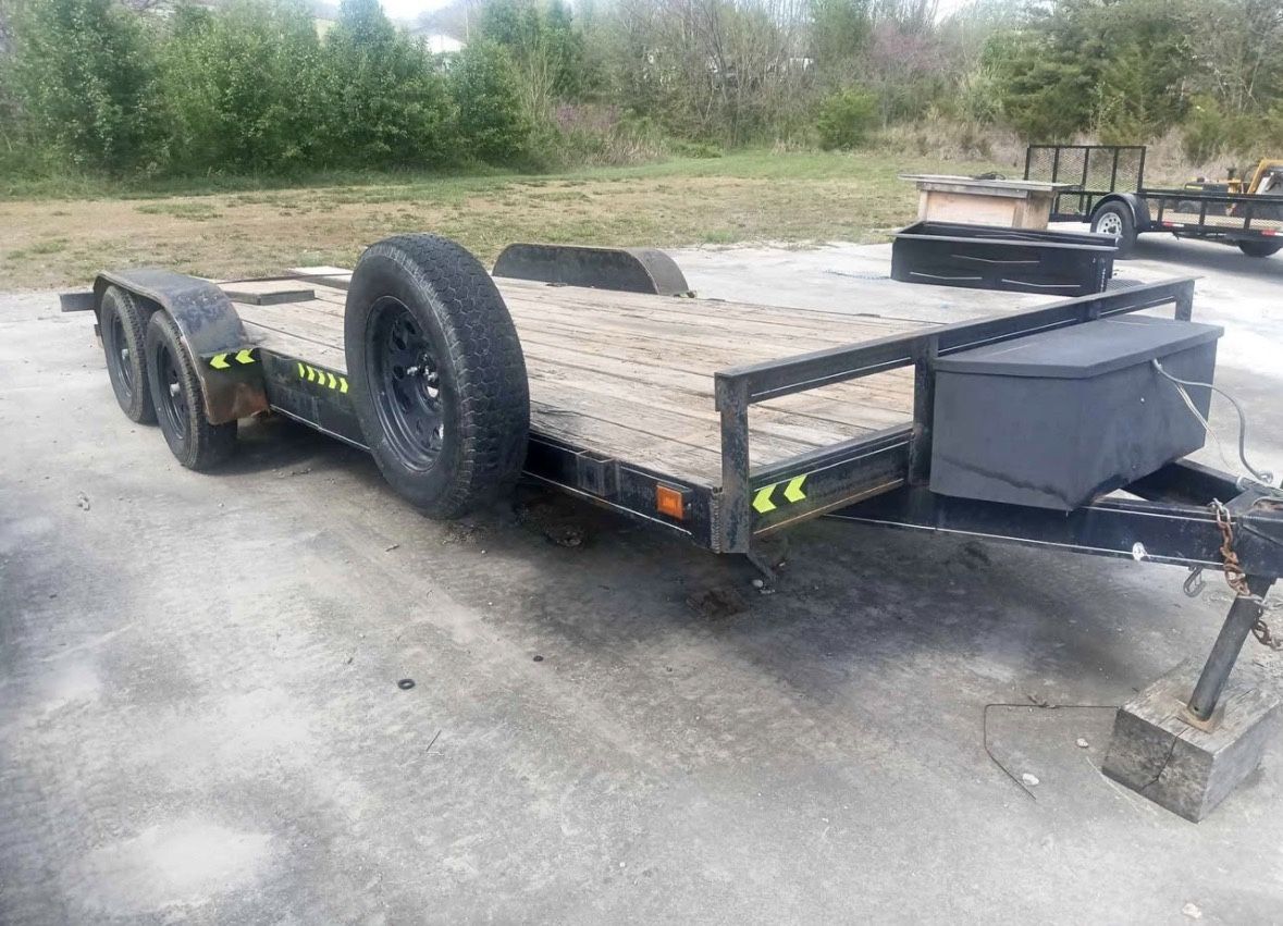If it's listed it's available I will delete it when it's sold I have a 20 ft car trailer in pretty good shape has definitely been used I've pulled it all over the states no problems the lights and brakes do work the brakes could probably use a freshen up though it does not have the original cheap 4 ft ramps that came with it but does does have a 5-ft set of ramps that can go with it will haul full size trucks have even hauled my dually on it once asking $2,500 I do have a clean oregon title to it in my name.
