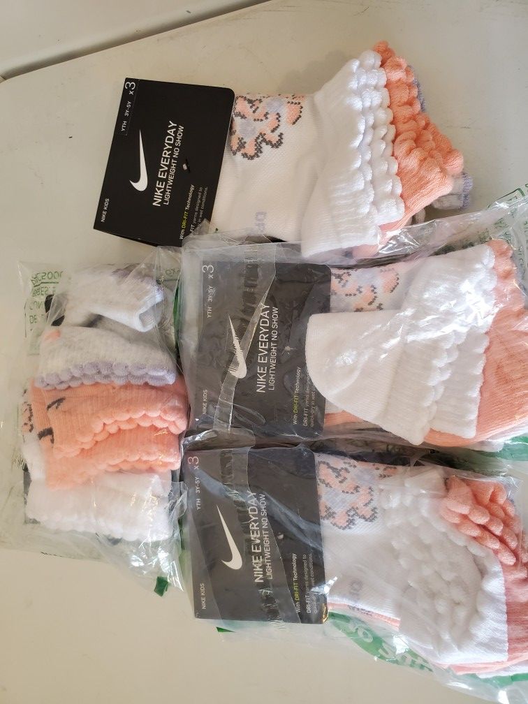 New Nike girls no show socks 3y-5y. 4 packs of 3 pairs each.