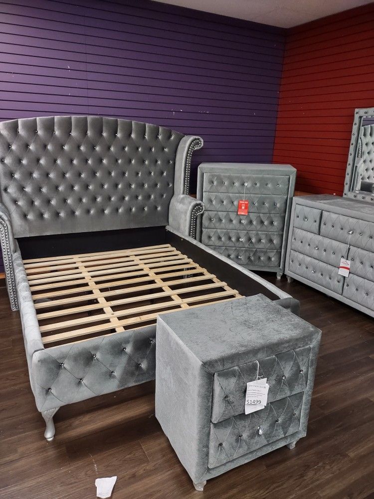 Calking bedframe is $599 Dresser is $399 Nightstand is 199 Chest of drawer is 299 Super fast delivery is available for this
